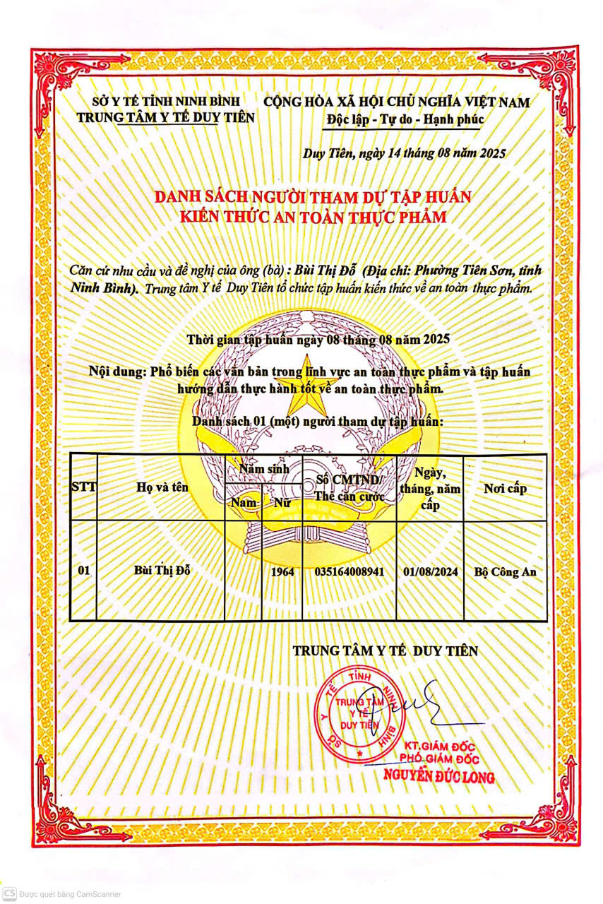 Giấy xác nhận vệ sinh an toàn thực phẩm