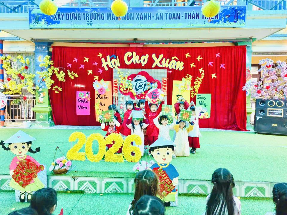 Hội chợ Xuân của Trường Mầm non A phường Tiên Sơn đã diễn ra với nhiều hoạt động ý nghĩa như: gói bánh chưng xanh, liên hoan văn nghệ mừng Xuân, trải nghiệm các gian hàng chợ quê. Đặc biệt, Chi đoàn thanh niên nhà trường đã tổ chức gian hàng thiện nguyện chung tay gây quỹ chia sẻ, ủng hộ và trao yêu thương đến các con có hoàn cảnh khó khăn, góp phần lan tỏa tinh thần tương thân tương ái trong những ngày Xuân yêu thương.