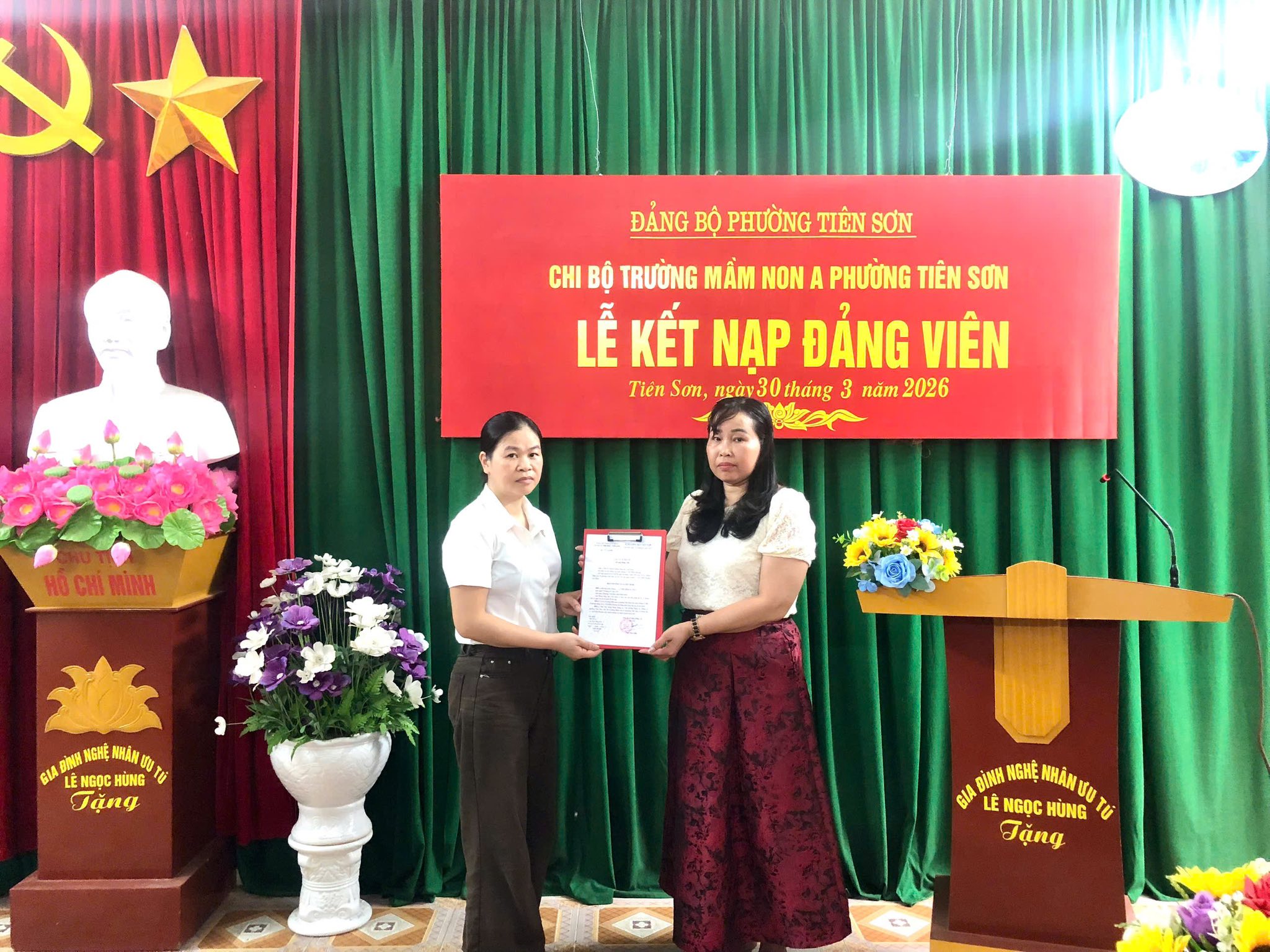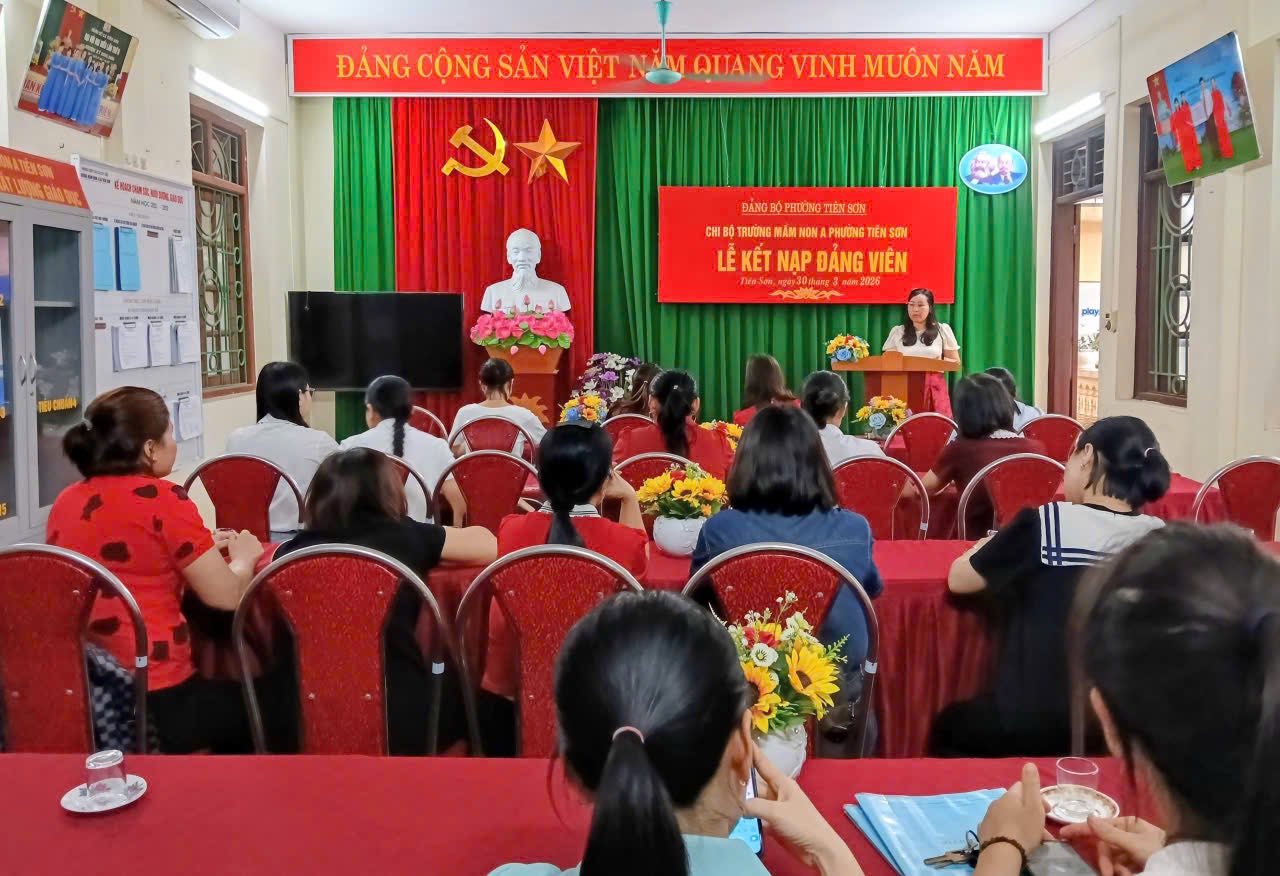 Chiều ngày 30/3/2026, Chi bộ trường mầm non A phường Tiên Sơn đã long trọng tổ chức Lễ kết nạp Đảng viên mới cho hai quần chúng ưu tú: Lý Thị Diễm Hương và Nguyễn Thanh Nhàn.