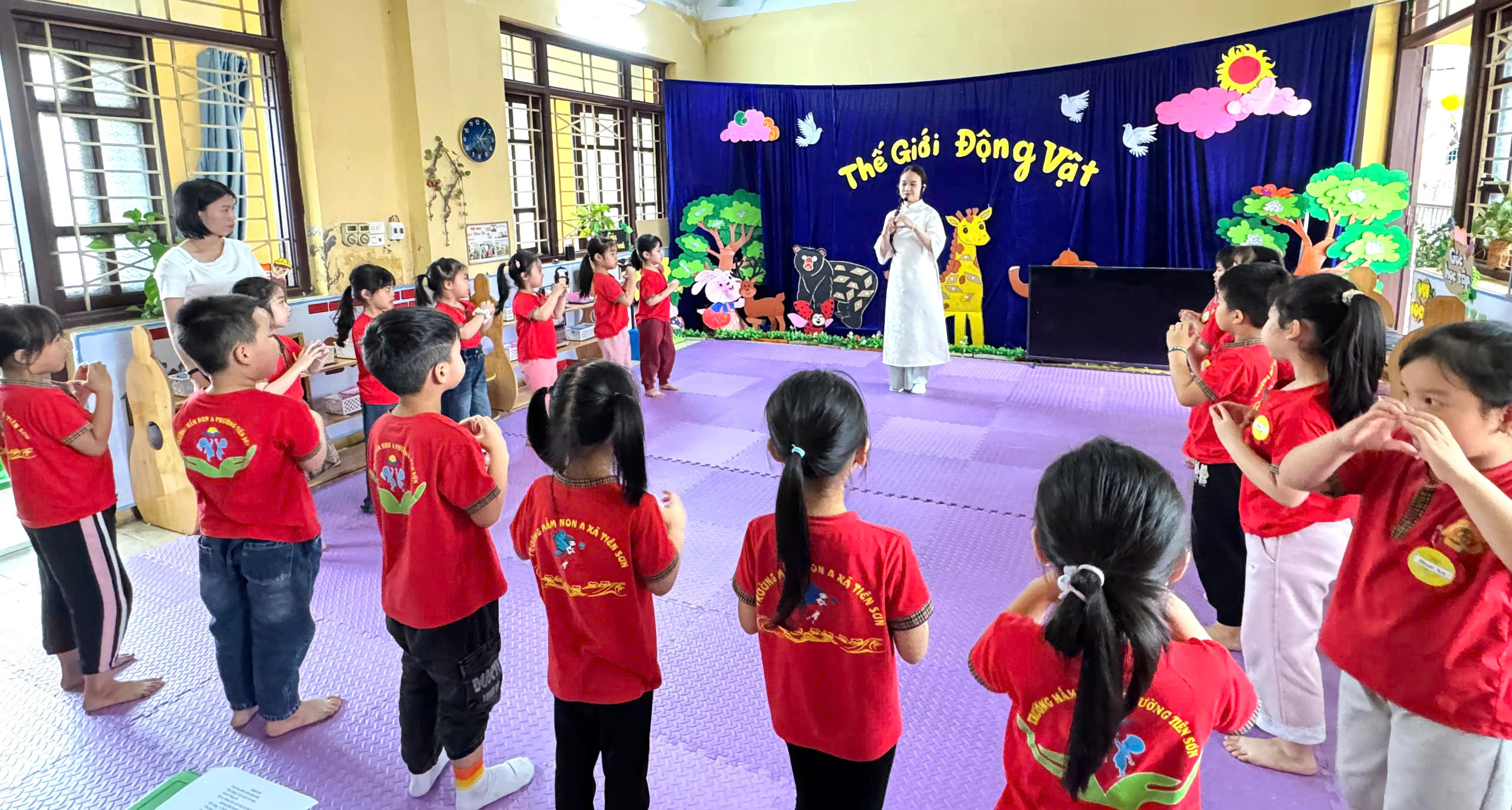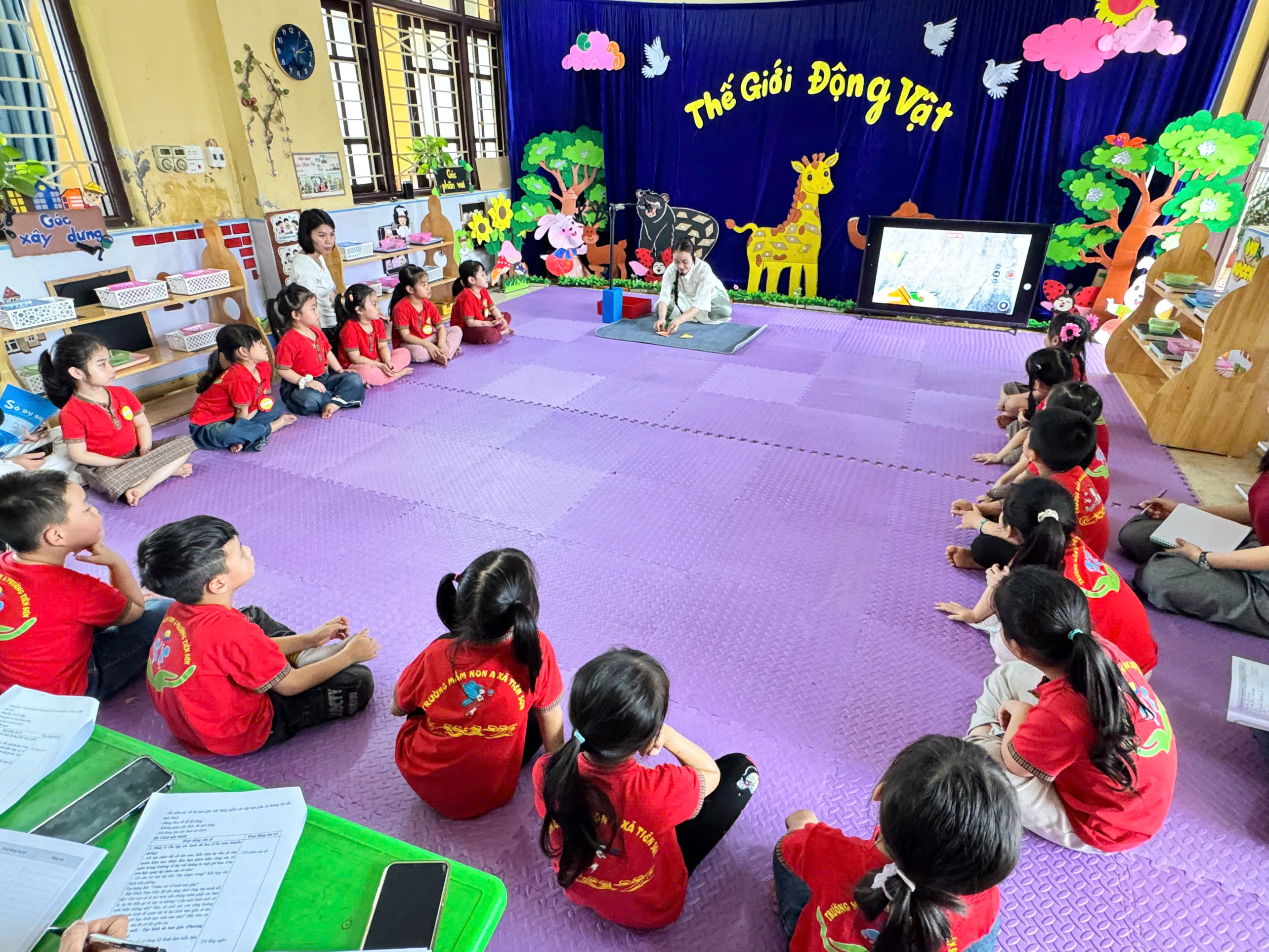 Điểm nổi bật của tiết học chính là việc lấy trẻ làm trung tâm, tôn trọng nhịp độ học tập và khả năng riêng của từng cá nhân. Trẻ không chỉ học bằng mắt nhìn, tai nghe mà còn bằng đôi tay và cả sự tò mò tự nhiên. Những câu hỏi hồn nhiên, những phát hiện bất ngờ của trẻ đã làm nên “linh hồn” của tiết học – nơi mà mỗi em đều được thể hiện suy nghĩ, cảm nhận của mình một cách tự tin và tự nhiên nhất.