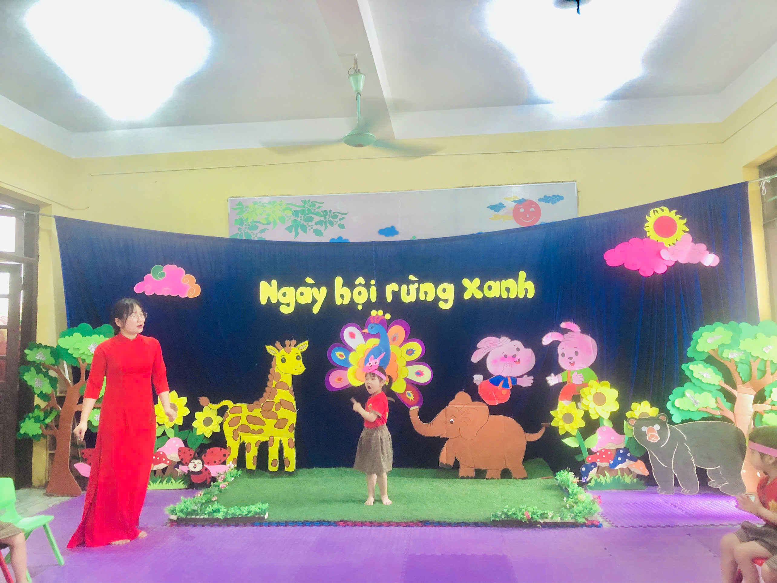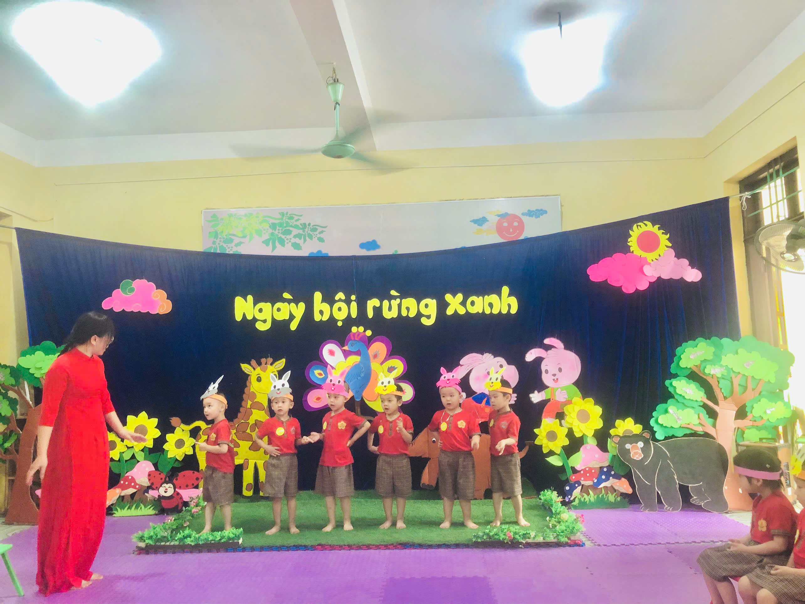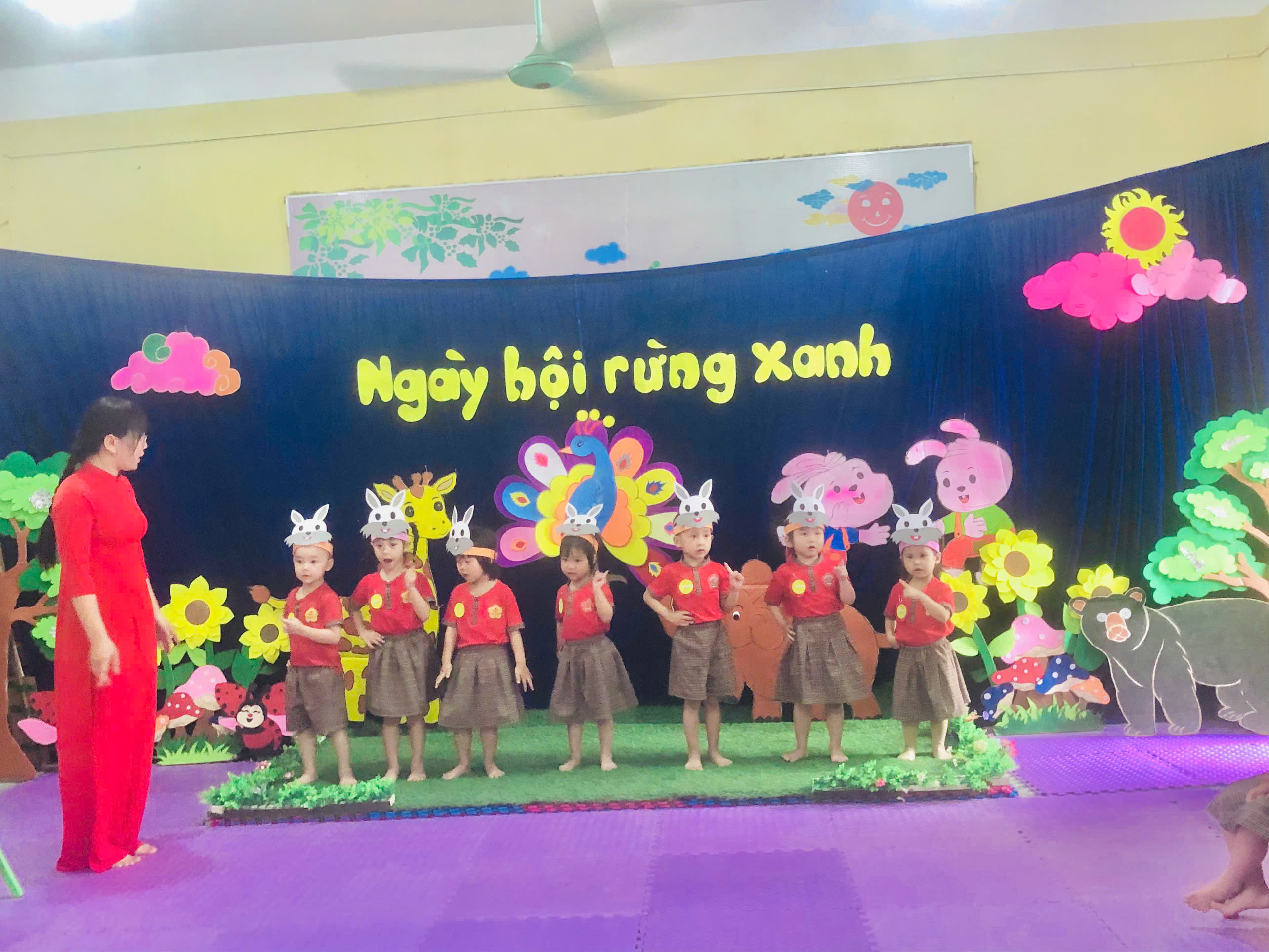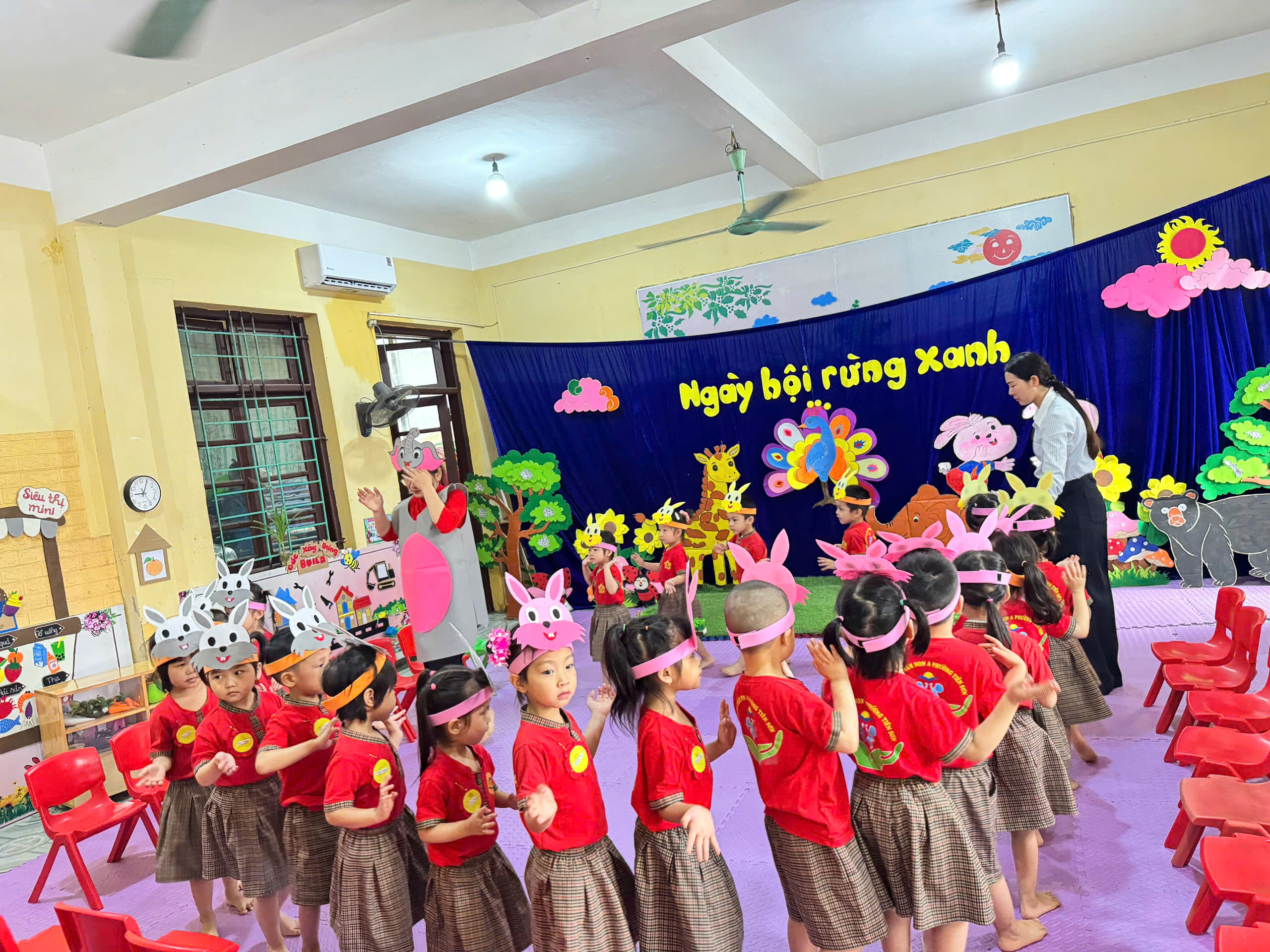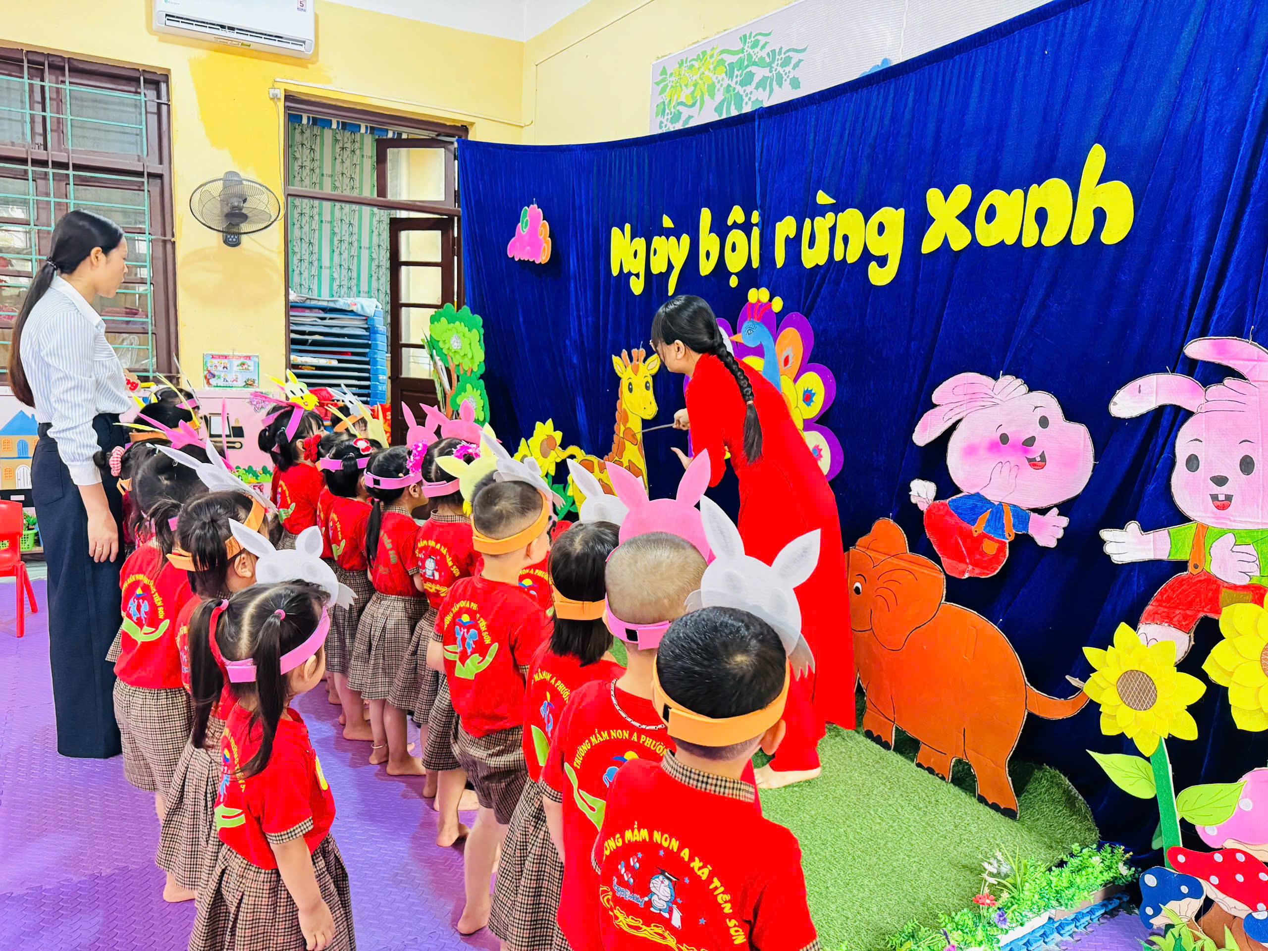 Ngay từ khâu chuẩn bị, tiết dạy đã thể hiện rõ sự đầu tư công phu và tâm huyết của giáo viên. Không gian lớp học được bố trí sinh động, gần gũi với hình ảnh chú thỏ đáng yêu, tạo nên môi trường học tập hấp dẫn, kích thích sự tò mò và hứng thú của trẻ. Với phương pháp giáo dục lấy trẻ làm trung tâm, cô giáo đã khéo léo dẫn dắt trẻ tham gia vào hoạt động vận động thông qua các tình huống trò chơi tự nhiên, nhẹ nhàng mà cuốn hút. Trong suốt hoạt động, trẻ được trải nghiệm các vận động như bật nhảy, di chuyển linh hoạt, phối hợp tay – chân nhịp nhàng theo hình tượng “chú thỏ con”. Không chỉ giúp phát triển thể chất, hoạt động còn góp phần rèn luyện sự nhanh nhẹn, khéo léo, khả năng tập trung và tinh thần hợp tác của trẻ. Đặc biệt, cô giáo luôn quan tâm đến từng cá nhân, khuyến khích trẻ mạnh dạn thể hiện, tạo cơ hội cho mọi trẻ đều được tham gia và phát triển theo khả năng của mình.